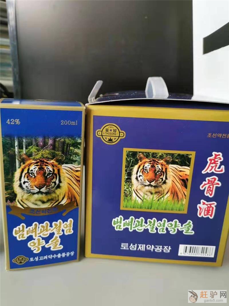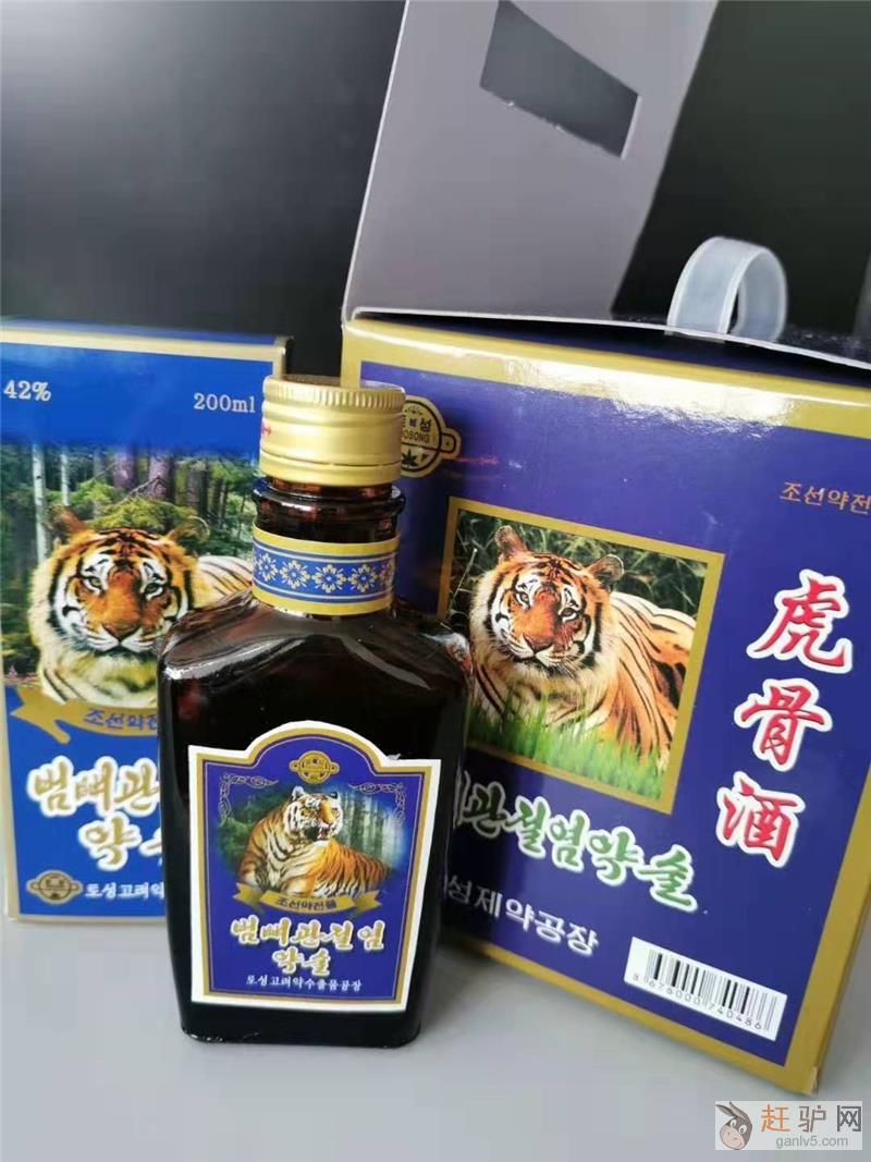 出售的朝鲜虎骨酒是来自朝鲜最大的国营制药厂土城制药厂,该厂的虎骨药酒传统工艺泡制,货真价实。